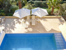 1-værelse-lejlighed 30 m2, i stueetagen. Emner egnet for 2 voksne. Fuldstændig renoveret i år 2017, komfortabelt og moderne indrettet: stue/spisestue med 1 fransk seng (1 x 160 cm, længde 200 cm), TV og internationale TV-kanaler (fladskærms TV), klimaanlæg. Udgang til terrasse. Kogeniche (ovn, 4 keramiske kogeplader, Brødrister, kedel, mikroovn, elektrisk kaffemaskine). Brus/WC. Stor terrasse 31 m2 delvis overdækket, lille terrasse 18 m2. Havemøbler, liggestole (2). Udsigt over have. Til benyttelse: vaskemaskine, strygejern hårtørrer. Internet (trådløs LAN [WLAN], gratis). Parkeringsplads (1 Bil). Bemærk venligst: ikke egnet til småbørn. Privat indgang, brandalarm. Med indhegnet grund. I vores have har du god plads til afslapning og rekreation. Det har en parkeringsplads. Der er en pool. Det har en privat pool.- Faciliteter