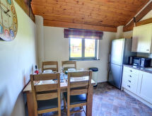 2-værelse-feriehytte. Komfortabelt og hyggeligt indrettet: stue med kabel-TV, cd og DVD. Udgang til havesideplads. 1 værelse med 1 dobbeltseng og brus/WC. Køkken (4 kogeplader, ovn, mikroovn, fryser) med spisebord. Opvarming. Have. Havemøbler. Udsigt over landskabet. Til benyttelse: internet (trådløs LAN [WLAN], gratis). Vores have inviterer dig til at slappe af. Vores legeplads tilbyder masser af plads til boltre og lege. Det har en dvd-afspiller.- Faciliteter