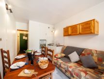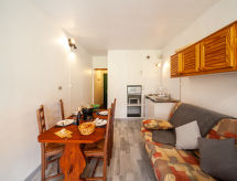 Lille lejlighedshus "Cosmos", på 10 etager. Ovenfor Corbier, 100 m fra bymidten, solrige beliggenhed, 50 m fra skiområdet. Til medbenyttelse: pool med varme (25 x 12 m, 90 - 200 cm dyb, Sæsonbestemt tilgængelighed: 16.Dec. - 16.Apr. og 01.Jul. - 31.Aug. poolen åbningstider: 10:00-19:00). I anlægget: elevator, skirum. Offentlige parkeringspladser 30 m. Indkøbsforretning, fødevarebutik 100 m, restaurant, bar 50 m, busstoppested, pool 150 m. Tennis 150 m, skilift, stolelift 50 m, skiskole 100 m, ski-børnehave 250 m, kælkebane 100 m. Bemærk venligst: The swimming pool facilities are 200 m from the residence at the municipal pool. Entrance for under 3’s is not allowed. Children between 3 and 5 years old are allowed subject to weather conditions (in winter). Entrance tickets to the swimming pool are included in your rental price and will be given to you when you check in.Interior