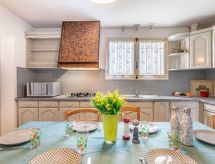 5-værelse-hus 90 m2. Rustikt og antikt indrettet: stue/spisestue med TV (fladskærms TV), elektrisk opvarming. Udgang til terrasse. Soveniche med 1 seng (90 cm, længde 190 cm). 1 værelse med 1 fransk seng (140 cm, længde 190 cm). 1 værelse med 1 fransk seng (140 cm, længde 190 cm). 1 værelse med 2 senge (90 cm, længde 190 cm). Køkken (ovn, opvaskemaskine, 4 gasblus, Brødrister, kedel, mikroovn, elektrisk kaffemaskine, Kapsler til kaffemasin (filtre+dolce gusto) ekstra). Bad, særskilt toilet. El-opvarming. Terrasse 8 m2. Havemøbler, grill. Til benyttelse: vaskemaskine, strygejern. Internet (trådløs LAN [WLAN], ekstra). Bemærk venligst: 1 lille husdyr/hund tilladt. Brandalarm. Der er et badekar. Bare tag din hund med dig i stedet for at overdrage det til slægtninge eller til kæledyrsbedriften. Fordi din firbenede ven er velkommen her.- Faciliteter