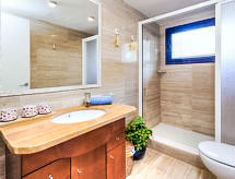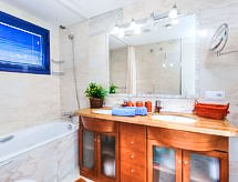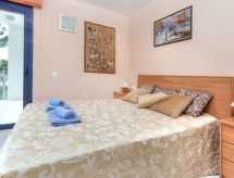 "Crystal", 5-værelse-rækkehus 223 m2 på 4 etager. Rummelig, komfortabelt og stilfuld indrettet: 1 værelse med 1 fransk seng (150 cm, længde 190 cm), klimaanlæg og varmluft opvarming. Udgang til terrasse med 1 fransk seng (150 cm, længde 190 cm), bad/WC, klimaanlæg og varmluft opvarming. Udgang til terrasse med 1 x 2 køjesenge (80 cm, længde 190 cm), klimaanlæg og varmluft opvarming. Brus/WC. Klimaanlæg, varmluftsopvarming. Nederste etage: mellemetage. Overetage: stue/spisestue med sat-TV. Udgang til terrasse. Køkken (ovn, opvaskemaskine, 4 keramiske kogeplader, Brødrister, kedel, mikroovn, fryser, elektrisk kaffemaskine). Havemøbler, liggestole. Panoramaudsigt over bjergene og hav. Til benyttelse: vaskemaskine, tørretumbler, strygejern barneseng, hårtørrer. Internet (trådløs LAN [WLAN], gratis). Bemærk venligst: ikke-ryger hus. HUTG-034191 Praktisk med elevatoren til hoveddøren. Med indhegnet grund. Med udsigt over havet. Den undertrykkende varme kan lægge en tung belastning på krop og sind. Derfor er lokalerne udstyret med aircondition. En pool er tilgængelig. Det har en privat pool. Der er en mikrobølgeovn.- Karakteristika for boligen
