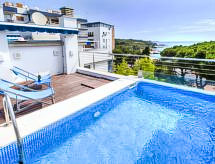 Playa de Aro: Moderne rækkehus "Crystal". I byen, 200 m fra bymidten af Platja D'Aro, 20 m fra havet, 20 m fra stranden, direkte adgang til stranden. Til medbenyttelse: have (indhegnet), pool kantet (Sæsonbestemt tilgængelighed: 01.Maj. - 30.Sep.). Udendørs brus, terrasse, havemøbler. Til alene benyttelse: pool kantet (3 x 5 m, Sæsonbestemt tilgængelighed: 01.Maj. - 30.Okt.). Terrasse. I huset: elevator. Parkeringsplads nr. 1. Supermarked 500 m, restaurant 300 m, sandstrand "Platja d'Aro" 30 m. Lystbådhavn 2 km, golfbane 3 km, tennis 2 km, ridehal 5 km. Nærliggende attraktioner: Waterpark Aquadiver 2 km. Ejeren accepterer ikke nogen ungdomsgrupper. Her finder du din tenniskompetant til den næste tenniskamp. Steder er tilgængelige.Interior