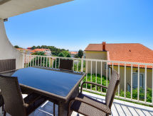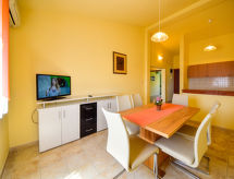 Lille lejlighedshus "Damir". I bydelen Banjol, 1.2 km fra bymidten af Rab, rolig, solrige beliggenhed, 500 m fra havet, 500 m fra stranden, i det grønne. Til medbenyttelse: grund 550 m2. I huset: adgang til internet. Parkeringsplads ved huset på grunden. Indkøbsforretning 600 m, restaurant, kiselstenstrand 700 m, strand belagt med beton 500 m. Venner af vandreture snørrer vandrestøvlerne og går på en udforskningstur gennem naturen i det flade område.Interior