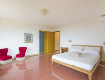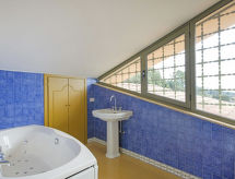 7-værelse-villa 300 m2 på 3 etager. Rummelig og lys, pæn og stilfuld indrettet: 2 dobbeltværelse, alle værelser med klimaanlæg. 1 værelse med panoramavindue med 1 dobbelt sovesofa, 1 dobbeltseng, brus/bidet/WC og klimaanlæg. Udgang til terrasse. Bad/bidet/WC, brus/bidet/WC. Gas-opvarming. Overetage: spisestue 21 m2 med panoramavindue med spisebord. Udgang til terrasse. Stor stue 87 m2 med skydedør, panoramavindue med TV (fladskærms TV). Udgang til terrasse. Store køkken 27 m2 (5 kogeplader, ovn, opvaskemaskine, mikroovn, elektrisk kaffemaskine). Udgang til have. Bad. 2. Overetage: 1 skrå stort værelse 30 m2 med skydedør, panoramavindue med 1 dobbelt sovesofa, 1 dobbeltseng, bad/bidet/WC og klimaanlæg. Udgang til altan. 3 terrasser. Grill (bevægelig). Meget flotte udsigt over havet. Til benyttelse: vaskemaskine, strygejern hårtørrer. Internet (trådløs LAN [WLAN], gratis). Parkeringsplads (indhegnet, 3 Biler) ved huset. Bemærk venligst: ikke-ryger hus. Maksimum 3 små husdyr/hunde tilladt. Ejendommen er på tre niveauer og har neutralt farvede fine møbler og detaljer med store vinduer, så det naturlige lys kan strømme gennem rummene. Til jeres velvære kan du nyde boblebadet i feriesæsonen. Det har en veranda. Huset er også udstyret med en privat pool. En tørretumbler han tilgængelig.- Karakteristika for boligen