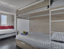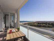 3-værelse-lejlighed 52 m2 i 6. etage, syd vest vendt. Lys, fuldstændig renoveret i år 2017, moderne og smagfuld indrettet: stue/spisestue med spisebord, sat-TV, digital TV, klimaanlæg og varmluft opvarming. Udgang til terrasse, retning syd og retning vest. 1 værelse med 1 fransk seng (160 cm), klimaanlæg og varmluft opvarming. Udgang til terrasse. 1 børneværelse med 1 x 2 køjesenge, 1 udtræksseng (2 pers.). Køkken (ovn, opvaskemaskine, 3 keramiske kogeplader, mikroovn, fryser, elektrisk kaffemaskine). Brus/WC. Stor terrasse 10 m2. Havemøbler. Herlige panoramaudsigt over havet og floden. Til benyttelse: vaskemaskine. Internet (trådløs LAN [WLAN], gratis). Bemærk venligst: 1 husdyr/hund tilladt. TV kun FR, ES. HUTG044011 Praktisk med elevatoren til hoveddøren. Desuden er de forkælet med en klar udsigt over havet. En veranda er tilgængelig.- Faciliteter