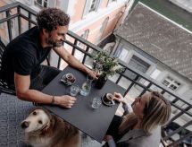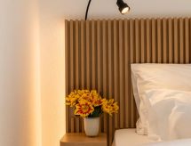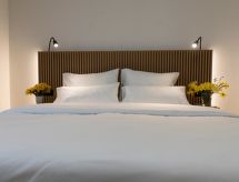 2-værelselejlighed "Deluxe Suite", til 4 personer, 45 m2, på øvre etage, komfortabelt og hyggeligt indrettet. Stue/spisestue med sat-TV. Rauchen nicht erlaubt. Internet (Trådlös LAN [WLAN]). 1 dobbel sofaseng. Soveværelse med 2 enkeltsenge. Åben køkke med 4 varmeplader, mikroovn, oven, opvæakemaskine, køleskab og fryser. Mad: morgenmad (ekstra), rundstykke service (ekstra), helpension (ekstra), halvpension (ekstra). Brus/WC og bidet. Altan, 2 havemøbler. Andet udstyr: pengeskab, hårtørrer. Husdyr er tilladt i denne bolig, så din firbenede ven vil føle sig hjemme. En barneseng er tilgængelig.- Karakteristika for boligen