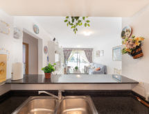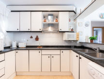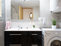 3-værelse-lejlighed 67 m2 i 1. etage. Lys, komfortabelt og pæn indrettet: stue/spisestue med 1 dobbelt sovesofa (135 cm, længde 190 cm), spisebord, digital TV og klimaanlæg. Udgang til loggia. 1 værelse med 2 senge (90 cm, længde 190 cm). 1 værelse med 1 fransk seng (150 cm, længde 190 cm). Åbent køkken (ovn, opvaskemaskine, 4 keramiske kogeplader, Brødrister, kedel, mikroovn, elektrisk kaffemaskine) med bar. Brus/bidet/WC. Intet opvarmningsalternativ. Stor terrasse. Havemøbler. Indskrænkede udsigt over havet. Til benyttelse: vaskemaskine, strygejern hårtørrer. Parkeringsplads. R0000000001 Der er et brusebad, og den daglige rengøring under bruseren tager ikke meget tid, så der er mere tilbage til ferien. Det har en terrasse. Huset er også udstyret med opvaskemaskine.- Faciliteter