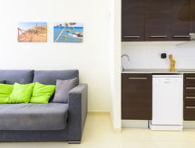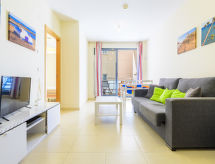 "El Balco", 2-værelse-lejlighed 60 m2 i 2. etage. Hensigtsmæssig og komfortabelt indrettet: stue/spisestue med 1 dobbelt sovesofa og spisebord. Udgang til altan. 1 værelse med 1 fransk seng (135 cm, længde 190 cm). Åbent køkken (ovn, opvaskemaskine, 4 keramiske kogeplader, mikroovn, fryser, elektrisk kaffemaskine). Brus/WC. Altan. Altanmøbler. Udsigt over bjergene og byen. Til benyttelse: vaskemaskine, strygejern hårtørrer. Internet (trådløs LAN [WLAN], gratis). R000000001 Der er WLAN (Wireless Local Area Network). Der er en mikrobølgeovn til rådighed.- Faciliteter