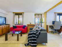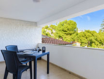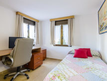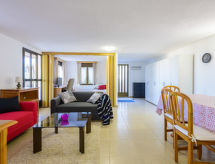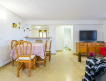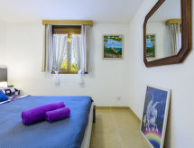 "El Refugio II", 2-værelse-lejlighed 45 m2 i 2. etage. Emner egnet for 2 voksne + 1 barn. Enkelt og hensigtsmæssig indrettet: stue/spisestue med spisebord, sat-TV, digital TV, fladskærms TV og ventilator. Udgang til terrasse. Lille gennemgangsværelse med 1 seng (90 cm, længde 190 cm). 1 værelse med 1 fransk seng (150 cm, længde 190 cm). Køkken (2 kogeplader, opvaskemaskine, Brødrister, mikroovn, fryser, elektrisk kaffemaskine). Brus/WC. Gas-opvarming. Opvarmning er ikke tilgængelig i alle værelser. Terrasse. Havemøbler. Udsigt over havet, svimmingpoolen, have og byen. Til benyttelse: strygejern højstol, barneseng til 2 år, hårtørrer. Internet (trådløs LAN [WLAN], gratis). Garage på grunden (1 Bil). 1 husdyr/hund tilladt. R000000001 Desuden er de forkælet med en klar udsigt over havet. En overdækket parkeringsplads er tilgængelig.- Faciliteter