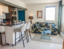 Residens "Estany", på 5 etager. I bydelen la Grande Plage, 100 m fra havet, 100 m fra stranden. Indkøbsforretning 1 km, supermarked 5 m, restaurant 1 km, bageri 1 km, café 500 m, busstoppested 700 m, togstation "La Franqui" 20 km, dykkercenter 5 km, pool 7 km, nudiststrand 10 km. Sejladsskole 3 km, tennis 3 km, minigolf 3 km, ridehal 600 m, cykelvej 6 km. Nærliggende attraktioner: Aqualand Port Leucate 7 km, Réserve Africaine de Sigean 41 km, Fort de Salses 20 km, Narbonne 55 km, Perpignan 25 km, Barcelone 215 km. Kendte søer nås nemt: Etang de Leucate ou Salses 7 km, Lac de Villeneuve de La Raho 28 km. Vandrestier Sentier du guetteur 8 km, Station meteorologique de Opoul Perillos 25 km, Sentier du littoral Collioure 40 km. Bemærk venligst: natlub/diskotek i nærheden. Flyveplads 20 km fra huset. Tilbringe de bedste dage på året på en sejlbåd er en anden mulighed. Sportligt udforske naturen og nyde dagen på et sejlskib. For at lære regionen at kende, anbefaler vi en afslappet ridetur. Hestevenner er velkomne i Le Barcarès.Interior
