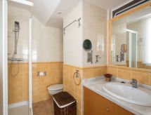 "Eurosol", 3-værelse-penthouse 89 m2 i 8. etage. Emner egnet for 4 voksne + 2 børn. Hensigtsmæssig og komfortabelt indrettet: stue/spisestue med digital TV, klimaanlæg og varmluft opvarming. Udgang til terrasse. 1 dobbeltværelse med 1 seng (90 cm), 1 fransk seng (135 cm), klimaanlæg og varmluft opvarming. 1 dobbeltværelse med 1 fransk seng (135 cm), 1 klapseng (90 cm), klimaanlæg og varmluft opvarming. Køkken (ovn, opvaskemaskine, 4 keramiske kogeplader, Brødrister, kedel, mikroovn, fryser, elektrisk kaffemaskine). 2 brus/WC. Terrasse 14 m2. Havemøbler. Herlige udsigt over havet. Til benyttelse: vaskemaskine, strygejern hårtørrer. Internet (trådløs LAN [WLAN]). VFT/MA/28853 Der er et brusebad, så tag dig tid til lidt afslapning og forfriskning. Ferieejendommen har en passager elevator. Desuden er de forkælet med en klar udsigt over havet. Huset er også udstyret med en internetforbindelse.- Faciliteter