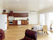 "Fagernipa (FJS557)", 4-værelse-hus 105 m2. Moderne og smagfuld indrettet: stue/spisestue med spisebord, sat-TV og internationale TV-kanaler. 3 værelse, alle værelser med 2 senge (90 cm, længde 200 cm). Åbent køkken (ovn, opvaskemaskine, 4 keramiske kogeplader, Brødrister, kedel, mikroovn, fryser, elektrisk kaffemaskine). Brus/WC. Opvarming. Trægulve, parketgulve. Terrasse. Havemøbler, grill. Udsigt over floden. Til benyttelse: vaskemaskine, højstol, barneseng. Internet (trådløs LAN [WLAN], gratis). Bemærk venligst: ikke-ryger hus. Maksimum 1 husdyr/hund tilladt. Brandalarm, brandslukker. 924531169- Faciliteter