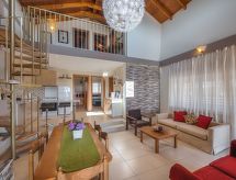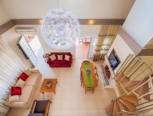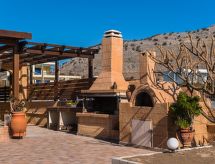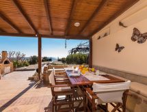 "Fay", 5-værelse-villa 130 m2 på 2 etager. Rummelig og lys, komfortabelt og pæn indrettet: åben stue/spisestue med åben kamin, spisebord og sat-TV (fladskærms TV), DVD. Udgang til have, til pool. 1 værelse med 2 dobbeltsenge. 1 dobbeltværelse med 1 dobbeltseng. Åbent køkken (4 kogeplader, ovn, opvaskemaskine, kedel, mikroovn, elektrisk kaffemaskine). Brus/WC. Klimaanlæg. Overetage: (trappe uden gelænder) 2 skrå dobbeltværelse, alle værelser med 1 dobbeltseng. Brus/WC. Klimaanlæg. Stor havesiddeplads delvis overdækket. Grill. Flotte udsigt over havet. Til benyttelse: vaskemaskine, pengeskab, strygejern hårtørrer. Internet (trådløs LAN [WLAN], gratis). 00001055652 I den idylliske have kan du nyde rekreation som en naturoplevelse. Udsigt over havet og beliggenheden er smuk. Huset er også udstyret med en veranda. Velegnet til grill. Huset er også udstyret med en privat pool. Der er en dvd-afspiller. Huset er også udstyret med en ovn.- Faciliteter