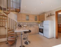 Moderne, smuk villa "Fay", på 2 etager, ensidig tilbygget. I bydelen Lardos, 7.7 km fra bymidten af Lindos, rolig, solrige beliggenhed, 30 m fra havet, 30 m fra stranden, direkte adgang til stranden. Til alene benyttelse: smuk, velplejet have med blomster og træer, pool kantet (Sæsonbestemt tilgængelighed: 01.Apr. - 30.Nov.). Udendørs brus, grill, parkeringsplads ved huset. Fødevarebutik, supermarked, restaurant, bar, bageri, café 400 m, sandstrand "Lardos" 30 m. Golfbane (18 hul) 34.2 km, ridehal 39.8 km. Nærliggende attraktioner: Valley of the Butterflies 47.1 km, Lindos Acropolis 8 km, Asklipio Castle 14.1 km, Palace of the Grand Master of Knights 52.7 km, Medieval City of Rhodes 53 km, Waterpark Rhodes 42.1 km. Bemærk venligst: bil anbefales. Velegnet for familier, babyudstyr på forespørgsel (inkl.). Unge grupper kun på forespørgsel. Uanset om du er professionel eller amatør, tøv ikke med og træn din afrunding på den nærliggende golfbane.Interior