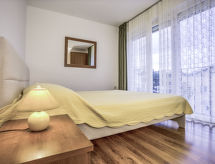 2-værelse-lejlighed 37 m2 i 1. etage. Stue/spisestue med 2 sovesofaer, sat-TV og klimaanlæg. Udgang til loggia. 1 dobbeltværelse. Åbent køkken (2 kogeplader). Brus/WC. El-opvarming (ekstra), klimaanlæg (ekstra). Der er et bordtennisbord.- Faciliteter