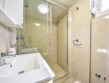 2-værelse-hus 70 m2 på 2 etager, syd vest vendt. Stue/spisestue 30 m2 med 1 dobbelt sovesofa (140 cm, længde 200 cm), sat-TV (fladskærms TV), klimaanlæg. Udgang til terrasse. 1 værelse med 1 fransk seng (160 cm, længde 200 cm), brus/WC. Åbent køkken (ovn, opvaskemaskine, 4 keramiske kogeplader, fryser, elektrisk kaffemaskine). Brus/WC. Nederste etage: (udvendig trappe) spisestue med åben kamin. Udgang til terrasse. Terrasse 8 m2 delvis overdækket, terrasse 8 m2, overdækket. Til benyttelse: hårtørrer. Internet (trådløs LAN [WLAN], gratis). Med indhegnet grund. En terrasse er tilgængelig.- Faciliteter