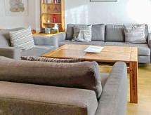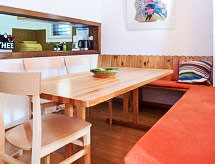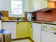 2-værelse-lejlighed 70 m2, i stueetagen. Enkelt og hyggeligt indrettet: stue/spisestue med 1 dobbelt sovesofa (1 x 140 cm, længde 200 cm), spisehjørne og TV. Udgang til terrasse. 1 dobbeltværelse med 1 dobbeltseng (2 x 90 cm, længde 200 cm). Køkken (3 kogeplader, ovn, opvaskemaskine, Brødrister, kedel, fryser, elektrisk kaffemaskine, raclettegrill, fonduesæt (ost )) med serveringslem. Bad/WC. Gulvvarme. Terrasse 20 m2, syd vendt. Havemøbler. Udsigt over Matterhorn. Til benyttelse: hårtørrer. Internet (trådløs LAN [WLAN], gratis). Bemærk venligst: ikke-ryger lejlighed. Der er et badekar. Et sted for afslappende ferie til solbadning og læsning i haven.- Faciliteter