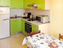4-værelse-lejlighed 80 m2 på 2 etager i 1. etage. Stue med 1 sovesofa, sat-TV og klimaanlæg. Stue med sat-TV og klimaanlæg. 1 værelse med 1 fransk seng (180 cm). 1 værelse med 1 seng og 1 fransk seng (200 cm, længde 220 cm). Udgang til altan. Køkken (ovn, 2 keramiske kogeplader, mikroovn, fryser, elektrisk kaffemaskine) med spisebord. 2 brus/WC. Overetage: spisestue. Liggestole (2). Udsigt over havet. Til benyttelse: internet (trådløs LAN [WLAN], gratis). Parkeringsplads (1 Bil) ved huset. Bemærk venligst: ikke-ryger lejlighed. Maksimum 1 husdyr/hund tilladt. Tilbyder spektakulær udsigt over havet. Kom ind og føl den forfriskende brise af klimaanlægget.- Faciliteter