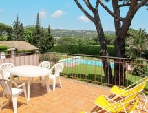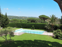 Residens "Gobino", på 2 etager. 2 huse i ferieområdet. 6 lejligheder i bygningen. 2 km fra bymidten af Sainte Maxime, 15 km fra centrum af Saint Tropez, 25 km fra bymidten af Fréjus, i en bydel, 1.5 km fra havet. Til medbenyttelse: grund 2'000 m2, park, velplejet have (ikke hegnet ind), pool indhegnet (13 x 8 m, 100 - 200 cm dyb, Sæsonbestemt tilgængelighed: 15.Maj. - 15.Okt.). I huset: vaskemaskine (til medbenyttelse). Supermarked 1.4 km, sandstrand 1.5 km. Bemærk venligst: babyudstyr på forespørgsel (inkl.). Ejer bor i sammen hus. Ridning til rådighed. Her er fremragende pleje af hest og rytter, og en unforgotten rytter ferie er intet i vejen.Interior