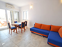 2-værelse-lejlighed 40 m2, på forhøjet stueetage, syd øst vendt. Stue/spisestue 20 m2 med 1 dobbelt sovesofa (140 cm, længde 200 cm), sat-TV (fladskærms TV), klimaanlæg. Udgang til terrasse. 1 værelse med 2 senge (90 cm, længde 200 cm). Åbent køkken (4 kogeplader, ovn). Brus/WC. Klimaanlæg (ekstra). Terrasse 6 m2, overdækket. Havemøbler. Til benyttelse: internet (trådløs LAN [WLAN], gratis). Parkeringsplads (1 Bil). Takket være vaskemaskinen finder du mindre tøj at bære.- Faciliteter