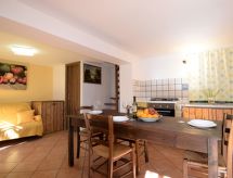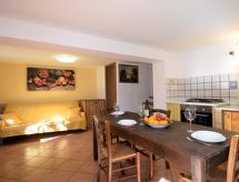 3-værelse-hus 80 m2 på 2 etager. Hensigtsmæssig og komfortabelt indrettet: stue/spisestue med 1 dobbelt sovesofa (140 cm). Kogeniche (4 kogeplader, ovn, Brødrister, kedel, fryser) med sat-TV (fladskærms TV). Udgang til have. Brus/WC. Vandkoger (60 liter). Overetage: (vindeltrappe) indgang. 1 dobbeltværelse. Udgang til terrasse. 1 dobbeltværelse. Særskilt toilet. Terrasse 10 m2, have 50 m2. Havemøbler, grill. Indskrænkede vid udsigt over havet, bjergene og dalen. Til benyttelse: vaskemaskine, strygejern hårtørrer. Parkeringsplads (2 Biler). Vores have inviterer dig til at slappe af. Velegnet til grill.- Faciliteter
