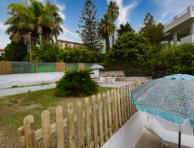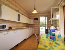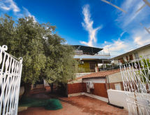 5-værelse-hus 160 m2 på 3 etager. Renoveret i år 2017, enkelt og hensigtsmæssig indrettet: store, åbent køkken 90 m2 (6 kogeplader, ovn, fryser) med spisebord, TV (fladskærms TV). Brus/WC. Overetage: (udvendig trappe) stue/spisestue med 1 dobbelt sovesofa og TV (fladskærms TV). Udgang til terrasse. Indgang med klimaanlæg og varmluft opvarming. 1 dobbeltværelse med brus/bidet/WC og TV (fladskærms TV). Udgang til veranda. 1 dobbeltværelse med TV (fladskærms TV). Udgang til terrasse. 1 værelse med 2 senge. Udgang til altan. Køkken (ovn, opvaskemaskine, 4 gasblus, Brødrister, kedel, mikroovn, fryser, elektrisk kaffemaskine) med spisebord, TV (fladskærms TV). Udgang til terrasse. Brus/bidet/WC. Klimaanlæg, varmluftsopvarming (ekstra). Tagetage: (udvendig trappe) skrå kabine, loftshøjde 120 - 240 cm med 1 dobbeltseng, brus og TV (fladskærms TV). Kogeniche (ovn, 4 gasblus, mikroovn, fryser). Udgang til terrasse. Særskilt toilet. El-opvarming, klimaanlæg, varmluftsopvarming. Stor terrasse 60 m2 delvis overdækket, stor terrasse 20 m2. Havemøbler. Udsigt over havet og byen. Til benyttelse: vaskemaskine, strygejern højstol, barneseng til 2 år, hårtørrer. Internet (trådløs LAN [WLAN], gratis). Bemærk venligst: ikke-ryger hus. Maksimum 1 husdyr/hund tilladt. Ingen elevator. Ingen intern forbindelsesdør mellem de adskilte boliger. Ejendommen er helt indhegnet. Et sted for afslappende ferie til solbadning og læsning i haven. Udsigt over havet og beliggenheden er smuk. Det har en terrasse. Huset er også udstyret med en parkeringsplads. Det har en pool. Der er en privat pool.- Faciliteter