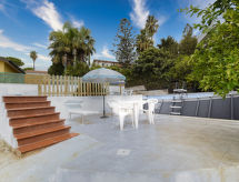 Enfamiliehus "Grande Ulisse". I bymidten fra Fontane Bianche, 16 km fra bymidten af Siracusa, 100 m fra havet, 100 m fra stranden. Til alene benyttelse: grund 800 m2 (indhegnet), have med planter, pool (oppsted svømmebassin) (10 x 5 m, 125 cm dyb, Sæsonbestemt tilgængelighed: 01.Apr. - 31.Okt.). Havemøbler, parkeringsplads (for 2 biler) på grunden. Fødevarebutik 300 m, supermarked 2 km, restaurant 300 m, bar, busstoppested 30 m, togstation "Fontane Bianche" 200 m, sandstrand "Fontane Bianche" 100 m. Nærliggende attraktioner: Avola 10 km, Noto 19 km, Marzamemi 38 km, Modica 57 km, Ragusa 72 km, Catania 77 km. Bemærk venligst: bil anbefales, ingen elevator. Residence med elektriske porte.Interior