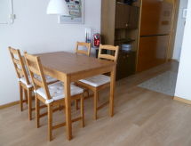 "Greppon 17", 1-værelse-lejlighed 29 m2. Emner egnet for 2 voksne + 2 børn. Komfortabelt og hyggeligt indrettet: stue/soveværelse med 1 dobbelt sovesofa (140 cm, længde 200 cm), 2 vægklapsenge (80 cm, længde 190 cm), TV. Udgang til altan. Lille, åbent køkken (3 kogeplader, ovn, opvaskemaskine, mikroovn, elektrisk kaffemaskine, fonduesæt (ost )). Bad/WC. Altan, øst vendt. Altanmøbler. Over skipisterne. Til benyttelse: internet (trådløs LAN [WLAN], ekstra). Parkeringsplads (ekstra), garage (ekstra). Bemærk venligst: ikke-ryger lejlighed. Bad i huset. Det har en overdækket parkeringsplads. Der er en indendørs pool. Der er en ovn til rådighed.- Faciliteter