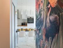 Flerfamiliehus "Haliotis", på 3 etager. I bymidten fra Lacanau-Océan, 100 m fra havet, 100 m fra stranden. Parkeringsplads. Indkøbsforretning 50 m, supermarked 300 m, restaurant 10 m, bageri 50 m, cykeludlejning 300 m, sandstrand 100 m. Golfbane 4 km, tennis 4 km, ridehal 4 km. Nærliggende attraktioner: Bordeaux 60 km, Dune du pyla 70 km, Saint Emilion 80 km.Interior