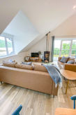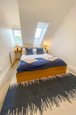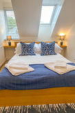 "Harbour Master", 4-værelse-lejlighed på øvre etage. Rummelig og lys, moderne og smagfuld indrettet: åben stue/spisestue med spisebord og TV (fladskærms TV), træovn. Udgang til altan. 1 dobbeltværelse med 1 dobbeltseng og brus/WC. 1 dobbeltværelse med 1 dobbeltseng. 1 mindre værelse med 1 seng. Åbent køkken (4 kogeplader, ovn, opvaskemaskine, fryser). Bad/brus/WC. Gulvvarme. Lille have, græsplæne. Altanmøbler, grill. Meget flotte udsigt over havet og bugt. Til benyttelse: vaskemaskine. Internet (trådløs LAN [WLAN], gratis). Parkeringsplads ved huset. Bemærk venligst: velegnet for familier. 1 husdyr/hund tilladt. TV kun EN. En ferie godbid for mennesker og dyr. Dette er en hund og kat venlig ferie indkvartering. Den afslapning og livsstilen i haven er uundværlig på ferie. Overrasket af en storslået udsigt over havet. En balkon er tilgængelig.- Faciliteter