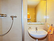 8-værelse-hus 200 m2. Rummelig, rustikt og hyggeligt indrettet: indgang. Stue/spisestue med sat-TV (fladskærms TV). Åben spisestue. 1 værelse med 1 seng og 1 dobbeltseng. Køkken/alrum (ovn, opvaskemaskine, 4 keramiske kogeplader, mikroovn, fryser, elektrisk kaffemaskine). Brus, brus/WC, særskilt toilet. Overetage: 2 dobbeltværelse. Udgang til altan. 1 værelse med 1 sovesofa og 1 dobbeltseng. Udgang til altan. 1 værelse med 2 senge. 1 værelse med 1 sovesofa, 1 dobbeltseng og brus. Brus, særskilt toilet. Altan 18 m2. Flotte udsigt over landskabet og byen. Til benyttelse: internet (trådløs LAN [WLAN], ekstra). Bemærk venligst: ikke-ryger lejlighed. Brandalarm, brandslukker. Rygning er imod husreglerne. Der er en opvaskemaskine.- Faciliteter