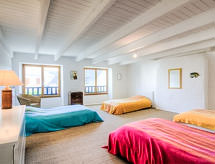 3-værelse-rækkehus 95 m2 på 2 etager. Rummelig, pæn indrettet: stue/spisestue med TV. Udgang til terrasse. Åbent køkken (ovn, opvaskemaskine, 3 Induktionskomfur, mikroovn, elektrisk kaffemaskine). Brus, særskilt toilet. Gas-opvarming. Overetage: 1 skrå værelse med 4 senge (90 cm, længde 190 cm), bad og separate toilet. 1 skrå værelse med 1 fransk seng (1 x 140 cm, længde 190 cm). Lille terrasse. Til benyttelse: vaskemaskine. Internet (trådløs LAN [WLAN], gratis). Bemærk venligst: brandalarm.- Aktiviteter i nærheden