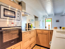 Rækkehus "Hoche". I byen, 2 km fra bymidten af St Pierre Quiberon, 300 m fra havet, 300 m fra stranden. Offentlige parkeringspladser 50 m. Restaurant 500 m, bageri 50 m, togstation "d'Auray" 18 km, færge "pour Belle-ile en mer" 8 km, sandstrand 150 m, varmtvandsbad "Thalassothérapie de Quiberon" 8 km. Surfskole 4 km, sejladsskole 4 km. Nærliggende attraktioner: Presqu'ile de Quiberon 8 km, Les alignements de Carnac 12 km, Auray 30 km, Vannes 50 km, Lorient 60 km.Interior