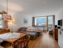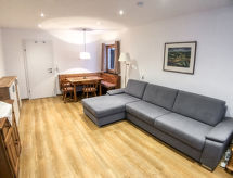 " Holger", 1-værelse-lejlighed 40 m2 i 1. etage. Delvis renoveret i år 2021, hyggeligt indrettet: indgang med 1 x 2 køjesenge (140 cm, længde 200 cm). Stue/soveværelse med 1 dobbelt sovesofa (168 cm, længde 195 cm), sat-TV (fladskærms TV). Udgang til altan. Lille køkken (2 kogeplader, ovn, Brødrister, mikroovn, grill, elektrisk kaffemaskine) med spisehjørne. Brus/WC. Gas-opvarming. Terrasse 10 m2, syd vendt. Flotte panoramaudsigt over bjergene, dalen og skipisterne. Til benyttelse: internet (trådløs LAN [WLAN], gratis). Parkeringsplads, garage ved huset. Bemærk venligst: velegnet for familier. Ikke-ryger lejlighed. Brandalarm, brandslukker. 50628-001136-2020 Det har en overdækket parkeringsplads.- Faciliteter