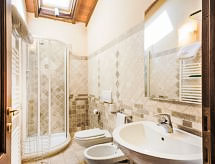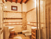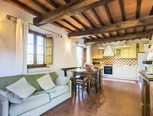Residens "Il Borghetto". 7 km fra bymidten af Barberino di Mugello, 38 km fra centrum af Firenze, høj beliggenhed på en bakke, 7 km fra søen. Til medbenyttelse: have (indhegnet), pool (12 x 6 m, 100 - 220 cm dyb, Sæsonbestemt tilgængelighed: 05.Maj. - 28.Sep.). Udendørs brus, havemøbler, grill, legeplads (rutschebane, gynge). I huset: vaskemaskine (til medbenyttelse, ekstra), Opvarmningen betales lokalt, opvarme kun tilgængelig fra 01.11. til 15.04.. Parkeringsplads ved huset. Fødevarebutik 500 m, supermarked 7 km, badesø "Lago di Bilancino" 7 km. Golfbane (18 hul) 18 km. Nærliggende attraktioner: Outlet Barberino 14 km, Autodromo internazionale 15 km, Scarperia 20 km, Vicchio 28 km. Bemærk venligst. Golfspillere pas på! Her kan du vende din runde i en hyggelig og sosial atmosfære.Interior