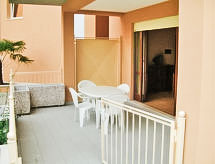 3-værelse-lejlighed 60 m2, i stueetagen. Hensigtsmæssig indrettet: stor stue/spisestue med 1 sovesofa (140 cm), sat-TV. Udgang til havesideplads. 1 dobbeltværelse. 1 værelse med 1 x 2 køjesenge. Kogeniche (4 kogeplader, ovn, mikroovn, fryser, elektrisk kaffemaskine). Brus/bidet/WC. Gas-opvarming, klimaanlæg. Opvarme kun tilgængelig fra 01.10. til 30.04. Havesiddeplads 15 m2, overdækket. Havemøbler. Udsigt over svimmingpoolen. Til benyttelse: vaskemaskine, barneseng til 3 år. Internet (trådløs LAN [WLAN], gratis). Garage, højde 200 cm. CIR: 017187-CNI-00139 Residence. Du kan tage elevatoren til gulvet i lejligheden. Ejendommen er udstyret med solarium. En barneseng er tilgængelig. Der er en ovn til rådighed.- Karakteristika for boligen