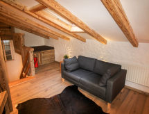 3-værelse-chalet 75 m2 på 2 etager. Delvis skråt, komfortabelt og smagfuld indrettet: spisestue med pejs, spisebord og stereoanlæg. Åbent køkken (ovn, 4 keramiske kogeplader, kedel, mikroovn, elektrisk kaffemaskine) med bar. Bad/brus/WC. Gulvvarme. Tagetage: 2 lille værelse, loftshøjde 150 - 200 cm, alle værelser med 1 fransk seng (160 cm, længde 200 cm). Lille stue med panoramavindue med sat-TV, stereoanlæg og DVD. Udgang til altan. Trægulve. Havesiddeplads. Havemøbler, altanmøbler, grill (bevægelig). Udsigt over skoven. Til benyttelse: brænde (gratis). Internet (trådløs LAN [WLAN], gratis). Bemærk venligst: brandalarm, brandslukker. 50416-000167-2020 En veranda er tilgængelig. Velegnet til grillning. En barneseng er tilgængelig. Der er en brand pit. Der er en dvd-afspiller. Der er en ovn til rådighed.- Aktiviteter i nærheden
