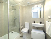 "Isea Calpe", 3-værelse-lejlighed 93 m2 i 6. etage. Emner egnet for 2 voksne + 2 børn. Rummelig og lys, komfortabelt og pæn indrettet: stue/spisestue med digital TV, klimaanlæg og varmluft opvarming. Udgang til terrasse. 1 værelse med 1 fransk seng (1 x 135 cm, længde 190 cm), brus/WC, klimaanlæg og varmluft opvarming. 1 værelse med 2 senge (90 cm, længde 190 cm), klimaanlæg og varmluft opvarming. Åbent køkken (ovn, opvaskemaskine, 4 keramiske kogeplader, Brødrister, kedel, mikroovn, elektrisk kaffemaskine). Brus/WC. Lille terrasse. Havemøbler. Flotte udsigt over byen og by. Til benyttelse: vaskemaskine, strygejern højstol, barneseng til 2 år, hårtørrer. Internet (trådløs LAN [WLAN], gratis). Velegnet for familier. VT-493522-A Dusj er forfriskende og et brusebad er til stede. Du kan tage elevatoren til gulvet i lejligheden. Huset er også udstyret med en terrasse. Huset er også udstyret med en børnebassin. Der er et bordtennisbord. Der er også en mikrobølgeovn.- Faciliteter