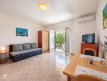 Lille lejlighedshus "Jasna". 11 km fra bymidten af Krk, 11 km fra centrum af Malinska, rolig, solrige beliggenhed, 400 m fra havet, 400 m fra stranden, i en blind vej. Til medbenyttelse: grund 570 m2. Havemøbler, grill. I huset: adgang til internet. Parkeringsplads ved huset på grunden. Indkøbsforretning 500 m, restaurant 1 km, kiselstenstrand 750 m, klippestrand, strand belagt med beton 400 m.Interior