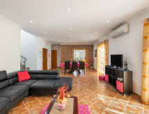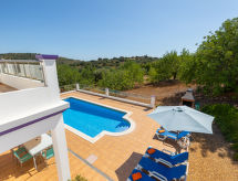 "Casa Joaquim", 4-værelse-hus 115 m2 på 2 etager. Lys, moderne indrettet: stue/spisestue med åben kamin, spisebord, sat-TV og DVD. Udgang til terrasse. 1 værelse med 2 senge (90 cm, længde 195 cm). Udgang til terrasse. Køkken (ovn, opvaskemaskine, 4 keramiske kogeplader, Brødrister, kedel, mikroovn, fryser, elektrisk kaffemaskine) med spisebord. Brus/WC. El-opvarming, klimaanlæg. Opvarmning er ikke tilgængelig i alle værelser. Overetage: 1 værelse med 1 dobbeltseng (160 cm, længde 200 cm). Udgang til altan. 1 værelse med 2 senge (90 cm, længde 195 cm). Udgang til altan. Bad/WC, brus/WC. 2 altan 13 m2, altan 9 m2, terrasse 135 m2, terrasse 70 m2. Havemøbler, grill, liggestole (6). Til benyttelse: vaskemaskine, pengeskab, strygejern højstol, barneseng, hårtørrer. Internet (trådløs LAN [WLAN], gratis). Bemærk venligst: ikke-ryger hus. Brandalarm, brandslukker. 25818/AL Selvom det bliver så varmt om natten, er det dejligt, du kan tænde klimaanlægget og sove i et behageligt tempereret indeklima. Huset er også udstyret med pejs. Huset er også udstyret med en privat pool. Huset er også udstyret med et trådløst lokalnetværk (WLAN).- Karakteristika for boligen