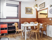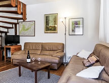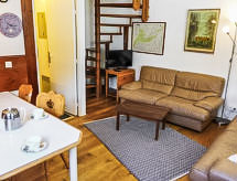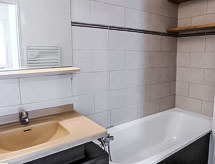 4-værelse-lejlighed 48 m2 på 2 etager i 4. etage. Stue/spisestue med TV. Udgang til altan. Kogeniche (4 kogeplader, ovn, opvaskemaskine, kedel, elektrisk kaffemaskine). Overetage: 1 værelse med 1 fransk seng. 2 værelse, alle værelser med 1 x 2 køjesenge. Bad/WC. El-opvarming. Altan, syd øst vendt. Meget flotte udsigt over bjergene. Til benyttelse: internet (trådløs LAN [WLAN], gratis). Bemærk venligst: TV kun FR. Brandalarm. Residence. Der er et badekar. Ferieejendommen har en passager elevator. Der er en balkon.- Karakteristika for boligen