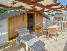 3-værelse-rækkehus 100 m2 på 4 etager, syd vendt. Stue med sat-TV og DVD. Spisestue. Åbent køkken (4 kogeplader, ovn, opvaskemaskine, elektrisk kaffemaskine). Særskilt toilet. Overetage: 1 værelse med 1 fransk seng (160 cm, længde 190 cm). Brus/WC. 2. Overetage: 1 værelse med 1 seng (90 cm, længde 200 cm), 1 fransk seng (160 cm, længde 200 cm), klimaanlæg. Brus/WC. Tagetage: spisestue skrå, loftshøjde 140 - 210 cm med tagvindue med køkkenblok. Udgang til terrasse. Terrasse 15 m2. Havemøbler. Indskrænkede udsigt over havet og byen. Til benyttelse: pengeskab. Internet (trådløs LAN [WLAN], gratis). Parkeringsplads (indhegnet) i 500 m. Huset er også udstyret med en parkeringsplads. En dvd-afspiller er tilgængelig.- Faciliteter