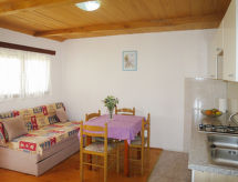 2-værelse-hus 25 m2. Stue/spisestue med 1 dobbelt sovesofa, spisebord og sat-TV. Udgang til terrasse. 1 værelse med 1 fransk seng. Åbent køkken (2 kogeplader). Brus/WC. Udsigt over havet. Maksimum 2 husdyr/hunde tilladt. Huset er også udstyret med en terrasse. Det har en overdækket parkeringsplads.- Faciliteter
