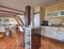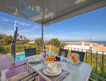 "Villa Karalieva", 4-værelse-hus 130 m2 på 3 etager. Komfortabelt og hyggeligt indrettet: stue/spisestue med sat-TV. Udgang pergola, til havesideplads, til pool. 1 værelse med 1 fransk seng (150 cm, længde 190 cm). Åbent køkken (ovn, opvaskemaskine, 4 keramiske kogeplader, mikroovn, fryser, elektrisk kaffemaskine). Brus/WC. Nederste etage: 1 værelse med 2 senge (90 cm, længde 200 cm), brus/bidet/WC. Overetage: galleri med 1 fransk seng (150 cm, længde 200 cm), klimaanlæg og varmluft opvarming. 2. Overetage: (udvendig trappe) Oriel. Herlige udsigt over havet, bjergene og dalen. Til benyttelse: vaskemaskine, strygejern myggenet højstol, barneseng, hårtørrer. Internet (trådløs LAN [WLAN], gratis). Parkeringsplads (3 Biler). VT-484416-A Udsigt over havet og beliggenheden er smuk. Der er en privat pool. Takket være vaskemaskinen finder du mindre tøj at bære.- Faciliteter