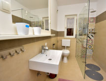 RIBNICA 15 km fra Novigrad: 2-familiehus "Kate", på 2 etager. 8 km fra bymidten af Obrovac, rolig, solrige, høj beliggenhed, 250 m fra havet, 250 m fra stranden, i det grønne. Til alene benyttelse: grund 600 m2 (indhegnet) med græsplane 150 m2, frugthave. Udendørs brus, havemøbler, grill, legeplads (gynge). I huset: adgang til internet. Parkeringsplads ved huset på grunden. Indkøbsforretning 500 m, restaurant 2 km, bar, kiselstenstrand 250 m.Interior