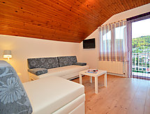 2-værelse-lejlighed 55 m2, på kvist etage, syd vest vendt. Skrå stue, loftshøjde 160 - 280 cm med 1 dobbelt sovesofa (180 cm, længde 200 cm), sat-TV (fladskærms TV). Udgang til altan. Indgang med klimaanlæg. 1 skrå værelse, loftshøjde 160 - 280 cm med 1 fransk seng (180 cm, længde 200 cm). Udgang til altan. Spisestue skrå, loftshøjde 155 - 280 cm. Skrå køkken (opvaskemaskine, 4 keramiske kogeplader, kedel, mikroovn, elektrisk kaffemaskine), loftshøjde 155 - 280 cm. Brus/bidet/WC. Altan 6 m2. Altanmøbler. Udsigt over havet og byen. Til benyttelse: vaskemaskine, strygejern barneseng, hårtørrer. Internet (trådløs LAN [WLAN], gratis). Udsigt over havet og beliggenheden er smuk. Selvom det bliver så varmt om natten, er det dejligt, du kan tænde klimaanlægget og sove i et behageligt tempereret indeklima. En vaskemaskine er tilgængelig til brug. Der er internetforbindelse. Der er også en mikrobølgeovn.- Faciliteter