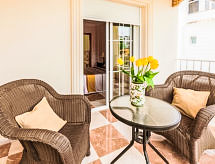 Nerja: Stor, komfortabelt hus "La Buganvilla", på 4 etager, fritstående, bygget i 2005. 2.5 km fra bymidten af Nerja, boligområde, 1.8 km fra havet, 1.8 km fra stranden, i en blind vej. Til alene benyttelse: gård, pool kantet (6 x 3 m, Sæsonbestemt tilgængelighed: 01.Jan. - 31.Dec.). Terrasse, havemøbler. I huset: solterrasse, vaskemaskine. Indkøbsforretning 70 m, supermarked 500 m, indkøbscenter 20 km, restaurant 300 m, bageri 70 m, café 500 m, fodgænger zone 2.2 km, ølhave 500 m, busstoppested "Bus urbano" 1 km, færge "Málaga" 50 km, sandstrand "Burriana" 1.8 km, dykkercenter 1.8 km, varmtvandsbad "Polideportivo de Nerja" 500 m. Lystbådhavn 20 km, marina 20 km, golfbane (18 hul) 20 km, sejladsskole 20 km, tennis 1 km, vandrestier fra huset 6 km. Nærliggende attraktioner: Cuevas de Nerja, Frigiliana, Malaga, Granada, Competa, La Herradura. Kendte skiområder nås nemt: Sierra Nevada. Kendte søer nås nemt: La Viñuela. Vandrestier Sierra Tejeda y Almijara. Bemærk venligst: babyudstyr (inkl.). Ejeren accepterer ikke nogen ungdomsgrupper. Af- og pålæsning af bagage er mulig ved ferieboligen.Interior