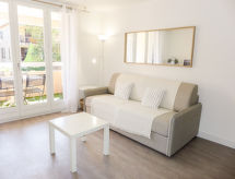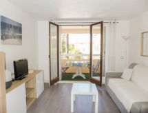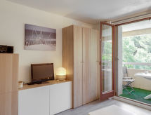 1-værelse-lejlighed 24 m2 i 1. etage. I år 2019, komfortabelt og pæn indrettet: indgang. Stue/spisestue med 1 sovesofa (160 cm, længde 195 cm), TV (fladskærms TV), ventilator. Udgang til loggia. Kogeniche (opvaskemaskine, 3 Induktionskomfur, Brødrister, kedel, elektrisk kaffemaskine, kombi-ovn) med bar. Brus/WC. Terrasse 5 m2. Havemøbler. Til benyttelse: strygejern hårtørrer. Internet (trådløs LAN [WLAN], ekstra). Bemærk venligst: TV kun FR. Brandalarm, ingen elevator.- Karakteristika for boligen