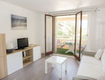 Lille residens "La Chenaie", på 3 etager. I bymidten fra Saint Aygulf, i hjertet af byen, 220 m fra havet, 900 m fra stranden. Til medbenyttelse: velplejet have med græsplæne og træer. Indkøbsforretning 100 m, fødevarebutik 140 m, restaurant 50 m, bar 100 m, bageri 150 m, café 140 m, sandstrand "Plage de Saint Aygulf" 900 m, klippestrand 220 m, park "Areca" 500 m. Lystbådhavn 1 km, golfbane (18 hul) 7 km, ridehal 6 km. Nærliggende attraktioner: Aqualand 4 km, Lunapark 4 km, Fréjus 5 km, Saint Raphaël 7 km, Saint Tropez 30 km. Residence med elektriske porte.Interior