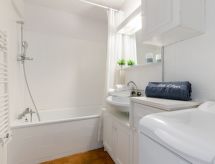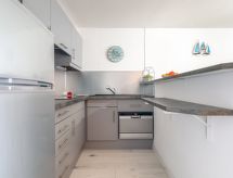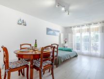 2-værelse-lejlighed 41 m2 i 2. etage. Komfortabelt indrettet: stue/spisestue med 1 dobbelt sovesofa (1 x 140 cm, længde 190 cm), TV (fladskærms TV), DVD. Udgang til altan. 1 værelse med 1 fransk seng (1 x 140 cm, længde 190 cm). Åbent køkken (opvaskemaskine, 3 Induktionskomfur, Brødrister, kedel, fryser, elektrisk kaffemaskine, Kapsler til kaffemasin (Senseo) ekstra, kombi-ovn). Bad, særskilt toilet. Altan 6 m2. Altanmøbler, elektrisk grill, liggestole (2). Til benyttelse: vaskemaskine, strygejern hårtørrer. Internet (trådløs LAN [WLAN], gratis). Garage nr. 7375 (1 Bil). Bemærk venligst: brandalarm, ingen elevator. Residence. Bad i huset.- Karakteristika for boligen